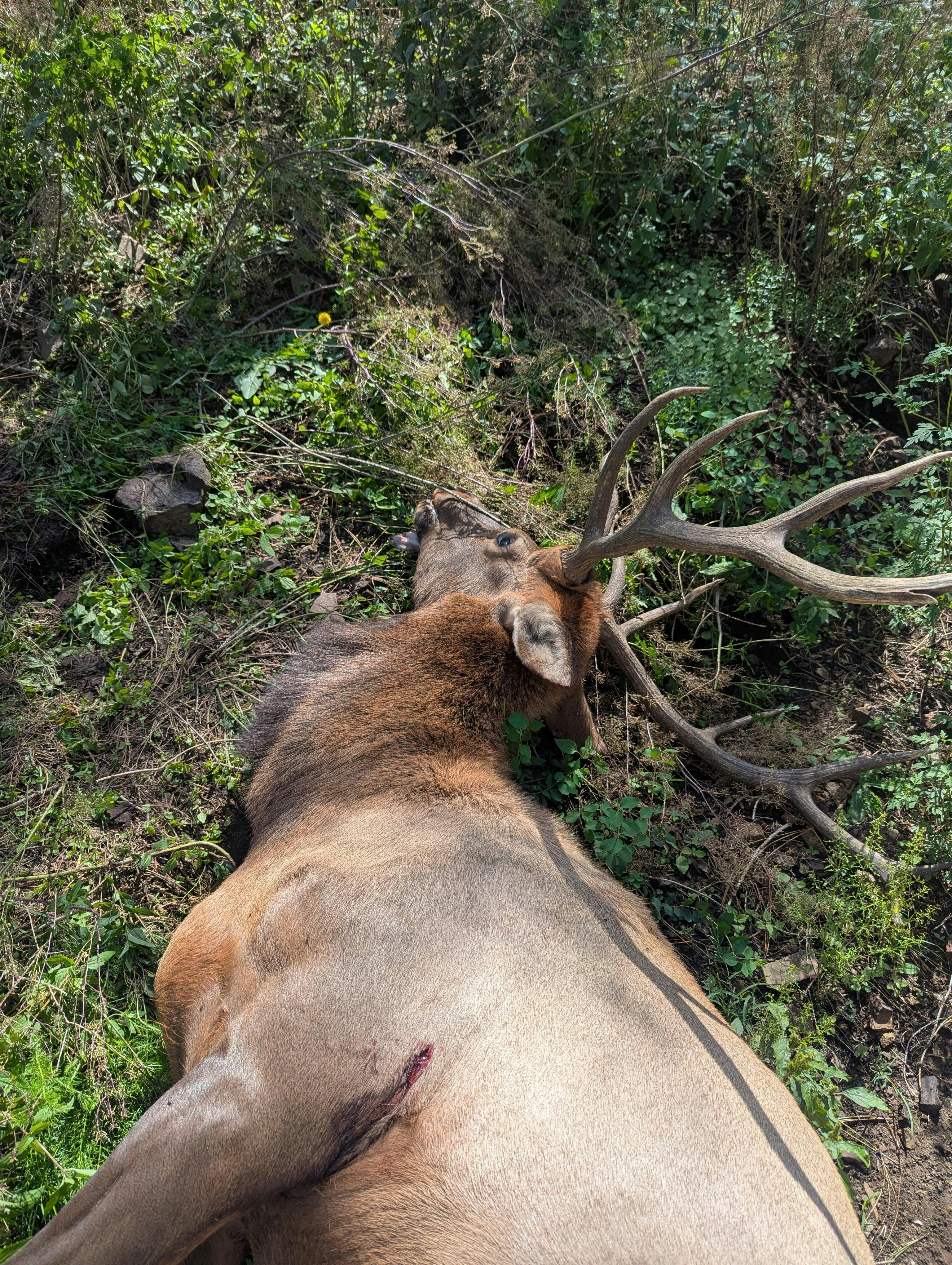 Shot this bull with the Jekyll and watched him start going down within sight. Dropped within 20 yards. It hit the offside shoulder, breaking through bone. It does have a small bend in the tip of the blade, but I've never seen a broadhead hit an elk shoulder and not do that.