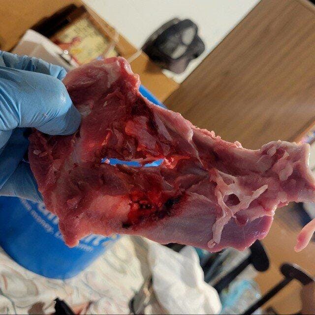 The cut on this broadhead is amazing. I hit a pig quartering away on the pig's left side. The BH went into the pigs left side ribs, through the spinal cord and through the scapula on the right side. Arrow was a near pass through. The pig rolled around and broke off both ends of the arrow on both sides and only a 10 inch piece was left inside. I found 6" of arrow and the tip broken off on the ground . I was very impressed with the scapula exit wound on the opposite side of the entry wound. See pictures.